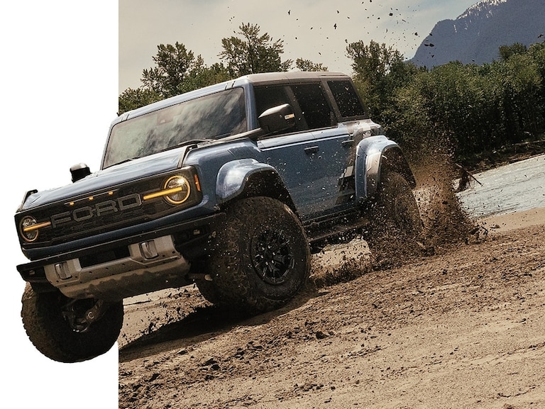 2025 Ford Bronco® Raptor® model with optional equipment shown. Always consult the Owner's Manual before off-roading, know your terrain and trail difficulty, and use appropriate safety gear.